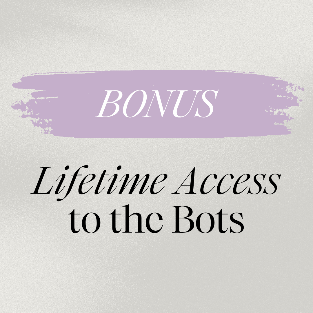 5 Custom Offer Bots to help you conduct market research on your dream client, map out your unique method, build the inclusions and structure of your offer and craft some magnetic messaging to market it [VALUE $1250]