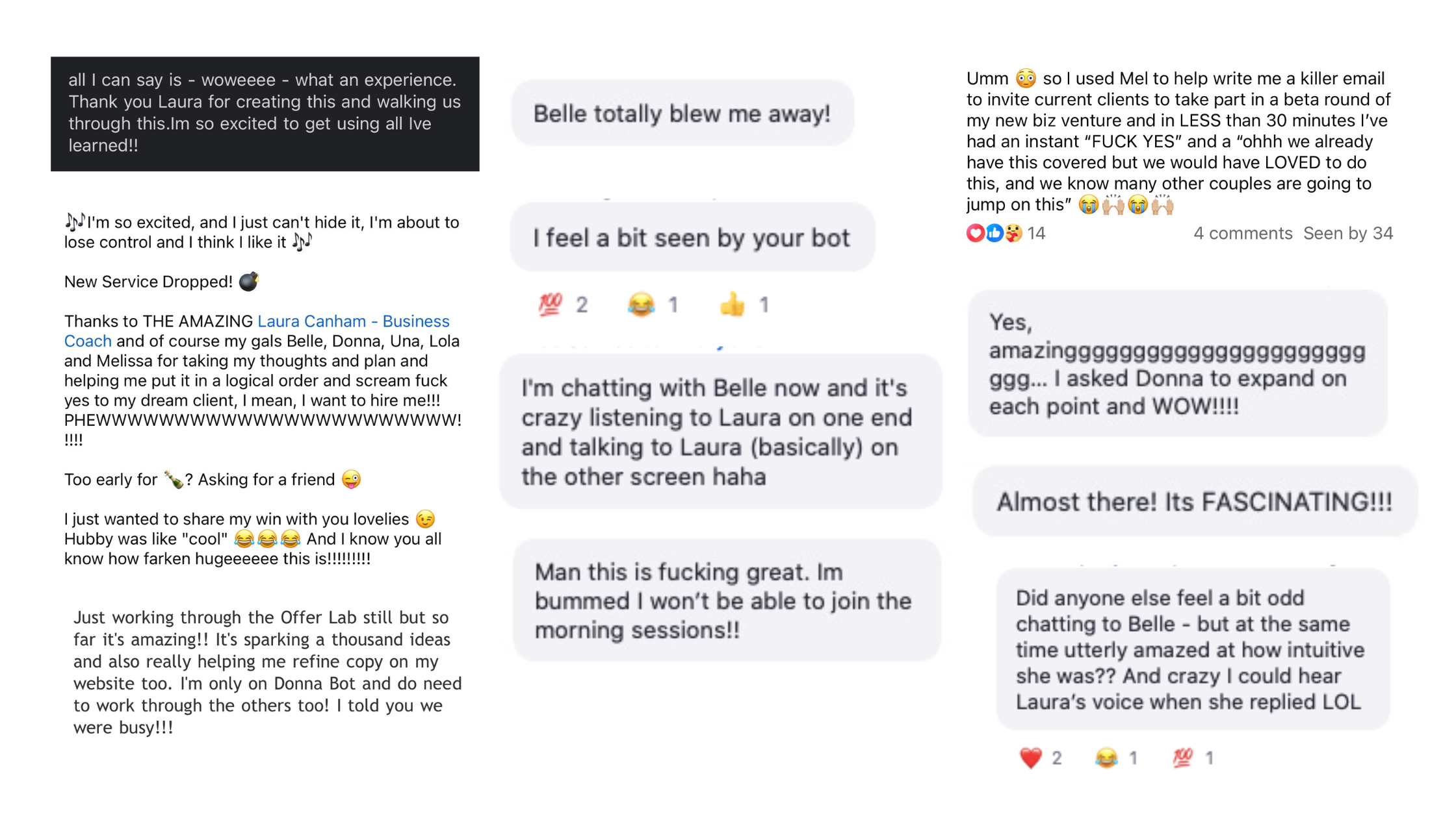 I often suffer from imposter syndrome but Una bot was my favourite as she became my own personal cheerleader! Just being able to pull out my unique factor helped so much when there are so many other similar businesses in the market.
